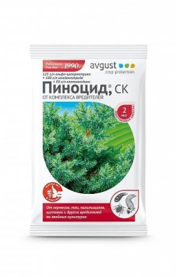 Инсектицид Пиноцид, 2 мл avgust - высокоэффективный системный препарат для защиты хвойных культур от широкого спектра вредителей: хермесы,тли,пилильщики,щитовки и др.