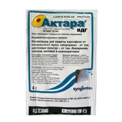 Инсектицид Актара ВДГ, 4 г — инсектицид кишечно-контактного действия, предназначен для защиты: