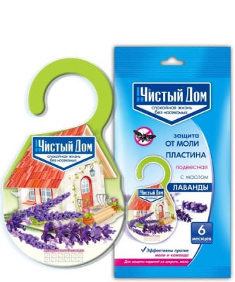 Пластина от МОЛИ подвесная, с маслом лаванды Чистый дом. Пластина содержит инсектицид и лавандовое масло. Эффективное средство для защиты изделий из шерсти и меха. Уничтожает моль, личинки и кожееда. Действует в течении 6 месяцев