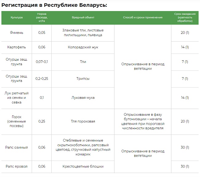 - Благодаря уникальному механизму действия не отмечено резистентности вредителей к препарату.