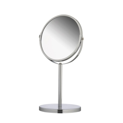 Зеркало косметическое Axentia 282801 настольное. Диаметр 170мм. Высота 345 мм. Двухсторонняя зеркальная поверхность с увеличением одной из сторон 3:1. Произведено из стального сплава, покрытого хромом, и стекла. Регулируемый угол наклона.