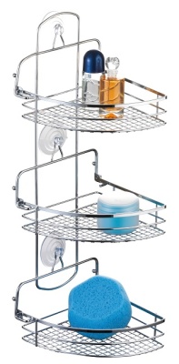 Полка для ванной Axentia 280871 - подвесная угловая трехуровневая. Крепится на гладкую поверхность при помощи присосок. Произведено из хромированной стали.