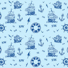 Занавеска для ванной 180х180 см Кораблики на голубом 01/10-11