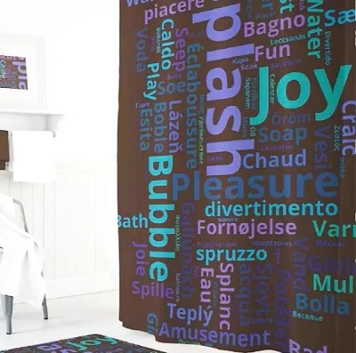 Занавеска для ванны 180х200см SPLASH/WORD CLOUD, без колец, Tropikhome