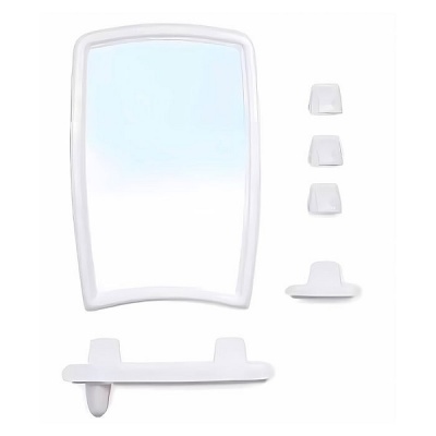 Прямоугольное зеркало заключено в обрамление сложной формы, благодаря чему выглядит эффектно и неизбито. Помимо него в комплект входят такие необходимые предметы, как: