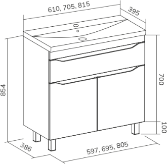 - Высота тумбы под умывальник: 86.4 см (с ножками), 71 см (без ножек)