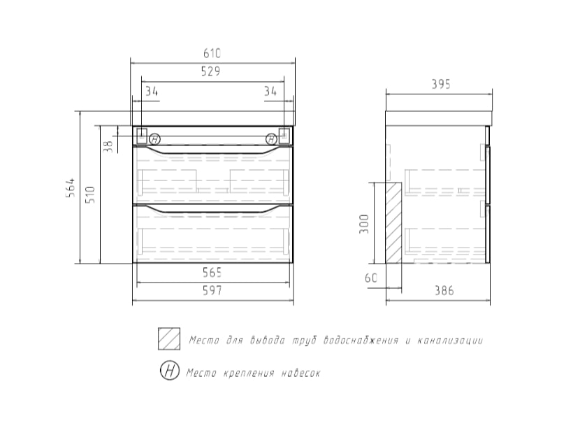Тумба подвесная с умывальником Volna Lake 60.2Y Lake 60