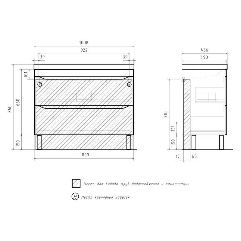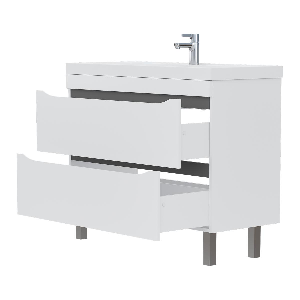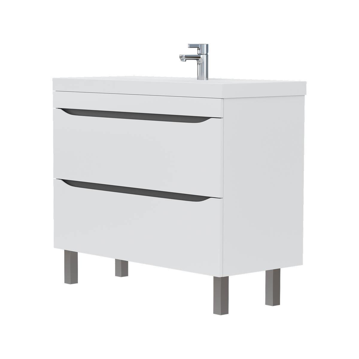 Напольная тумба с двумя выдвижными ящиками. Фурнитура оснащена системой плавного закрывания. Ящик и дверки открываются при помощи интегрированной ручки. Матовая поверхность фасадов.Основные: