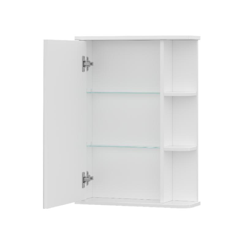 - Шкаф зеркальный с 2-мя внутренними стеклянными полками и 2-мя внешними полками из МДФ. По умолчанию шкаф зеркальный собран с открыванием дверки налево. При необходимости дверку можно перевесить на открывание направо. Петли на дверце с доводчиками.