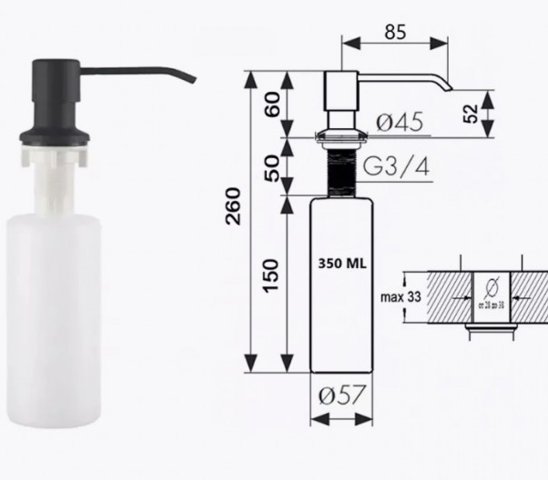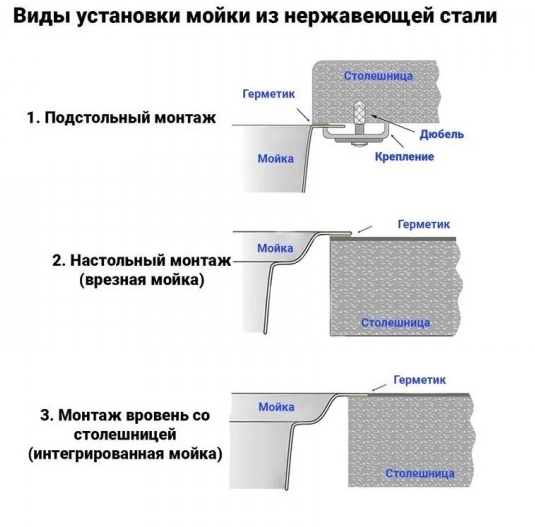 - монтаж под столешницу (для столешниц из камня, мрамора; не рекомендуется для столешниц из пористых материалов (ДСП и пр.); крепление докупается отдельно)