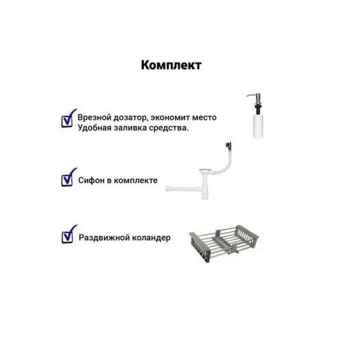 Мойка кухонная WS-36045/GER013 графит, с сифоном, коландером и дозатором, Wisent