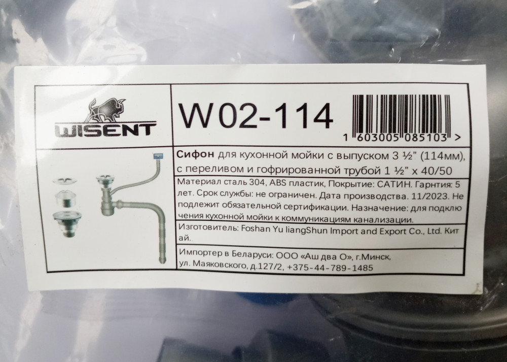 Мойка кухонная W35050В+W02+WW405B с сифоном и дозатором Wisent