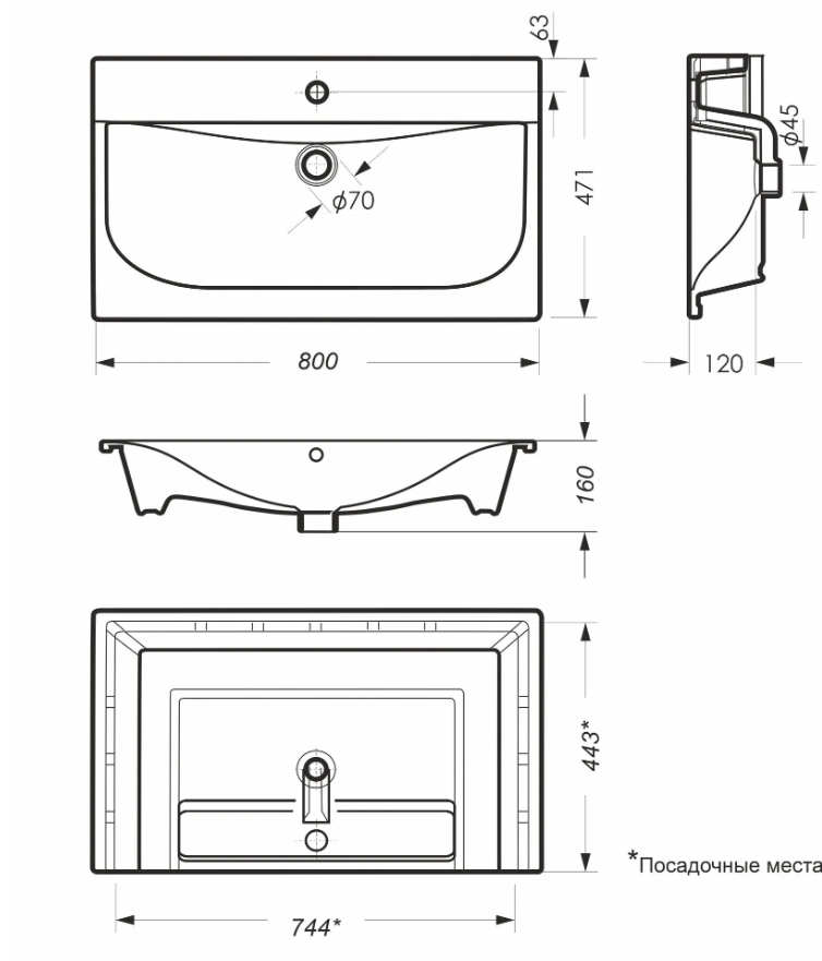 - Асимметричный умывальник: нет