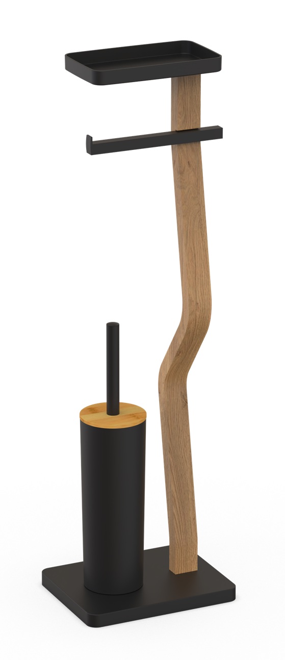 Стойка напольная для щетки и туалетной бумаги, черная/дерево Caspian 90044