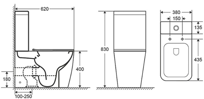 - Высота с бачком: 83 см