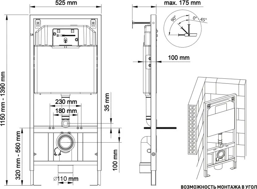 Инсталляция АТОМ 410 : Металлический каркас, окрашенный антикоррозийной эмалью. Объём резервуара воды 10 л с тепло- и шумоизоляцией. Подвод воды внутрь резервуара (G1/2 наружная).