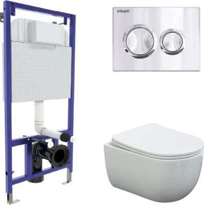Комплект BERGES инсталляция Visam Slim: кнопка О3, унитаз VENTAS Rimless EX-043241