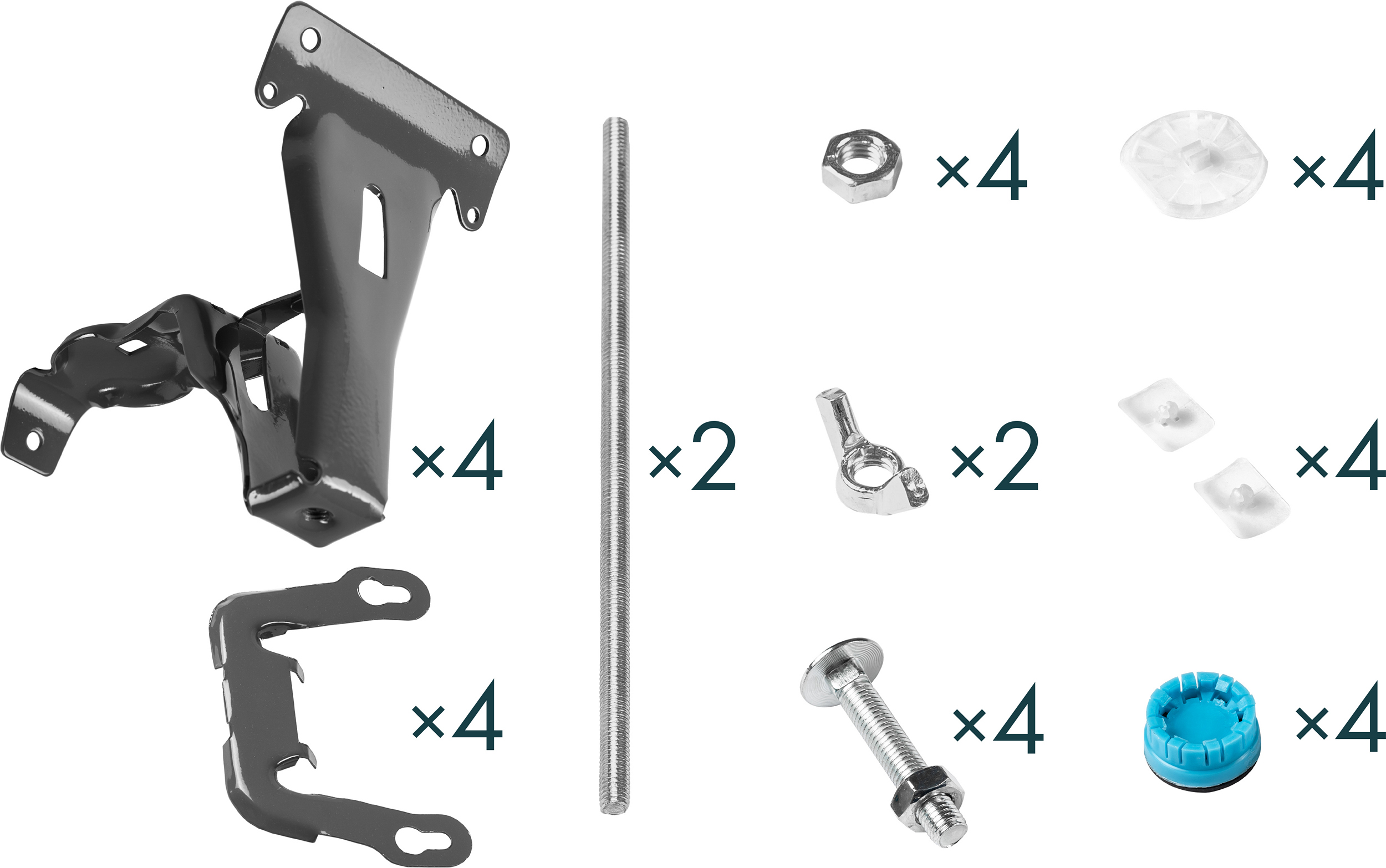 Набор ножек для ванны Saniteco используется как вспомогательное средство монтажа ванны и помогает идеально выровнять высоту.