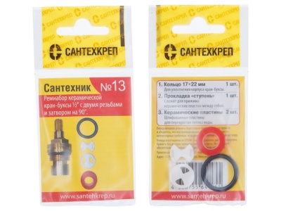 Набор прокладок "Сантехник №13" (для ремонта керамической кран-буксы 1/2 с двумя резьбами и затвором на 90 °), Сантехкреп