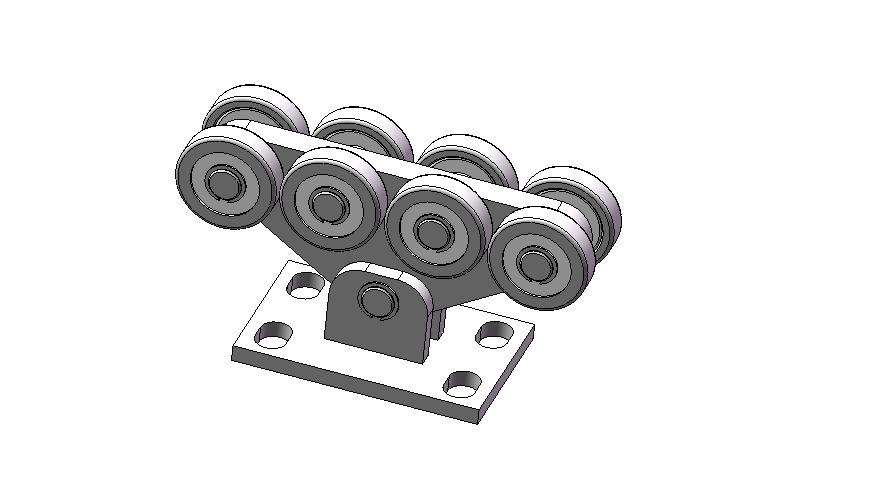 Опора ЕВРО (006)с допустимой нагрузкой 1500 кг выполнена 8-роликовай с цельной плитой, обеспечивающей высокую прочность. Конструкция опор обеспечивает их саморегулируемость и непрерывный контакт не менее 6 роликов одновременно с направляющей. Роликовая опора воспринимает нагрузки от створки ворот и передает их на фундамент, обеспечивает перемещение створки в направлениях, предусмотренных конструкцией ворот. В опоре используются усиленные подшипники 204 со специальной негигроскопичной низкотемпературной смазкой до -60°. Стопорное кольцо на центральной оси оцинковано и защищено от коррозии.