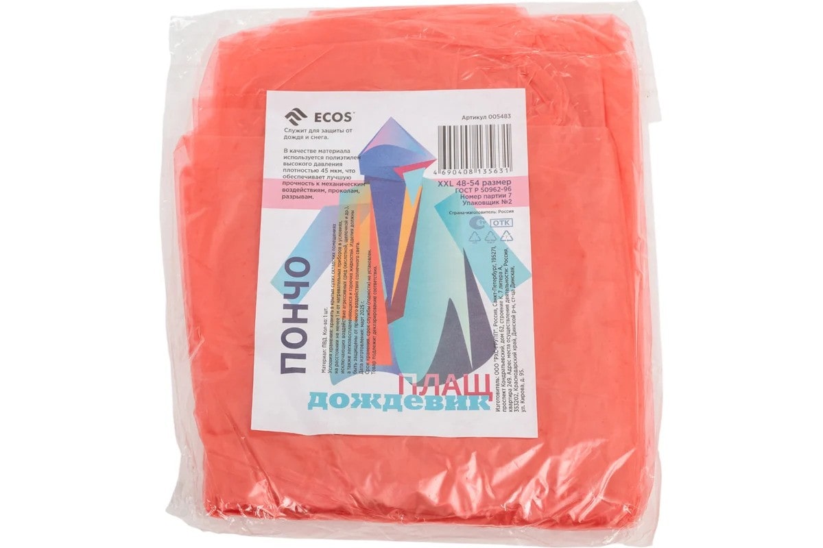 Дождевик-пончо, 48-54/XXL, ECOS 005483