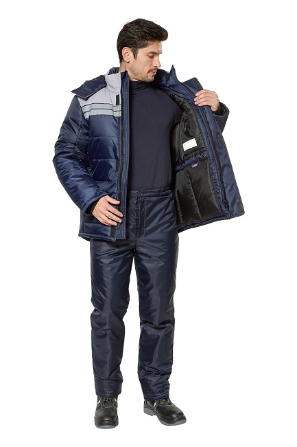 Куртка рабочая мужская зимняя "Эребус" (цвет темно-синий/серый), Спецконтракт - куртка прямого силуэта 2 класса защиты от пониженных температур (III климатический пояс) при выполнении работ на открытой территории и в неотапливаемых помещениях.