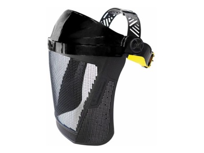 Экран из стальной крупноячеистой сетки (размер ячейки 2×2 мм окрашенный или с покрытием) обеспечивает защиту от высокоскоростных твердых частиц с низкоэнергетическим ударом (45 м/с). Козырек уменьшенного размера, изготовленный из термостойкого и ударопрочного материала «Termotrek». Наголовное крепление «Rapid» с мягким и гигиеничным обтюратором.