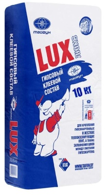 Клей гипсовый для ГКЛ и ГВЛ, 10кг, Люкс используется для приклеивания гипсокартонных (ГКЛ) и гипсоволокнистых (ГВЛ) листов, штучных гипсовых материалов, заполнения швов в стыках ГКЛ и ГВЛ, а также в качестве монтажного клея при возведении перегородок из гипсовых пазогребневых (полно- и пустотелых) плит. Возможно заполнение отверстий и неровностей на стенах и потолках. Применяется для работы внутри помещения.