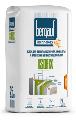 Клей для теплоизоляции Bergauf Isofix, 25 кг применяется для приклеивания тепло- и звукоизоляционных плит из минераловатного волокна и пенополистирола, а также для нанесения армирующего слоя. Используется для наружных и внутренних работ.