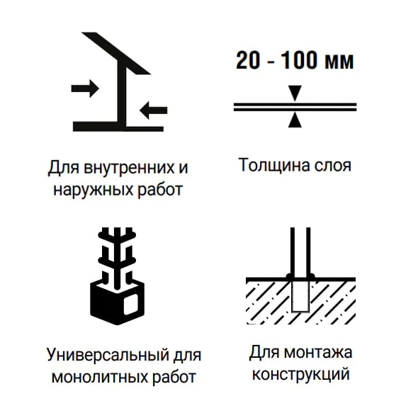 - Расход: 2,0 - 2,2 кг/м² на 1 мм толщины слоя
