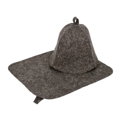 Набор для бани и сауны (шапка, коврик) серый, Hot Pot 41344