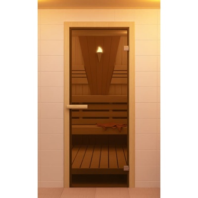 Дверь стеклянная для бани и сауны Бронза 190х70, стекло 6мм, 2 петли, коробка хвоя (DoorWood)
