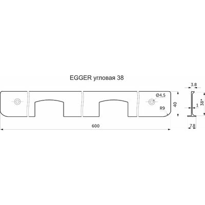 Планка к столешнице Egger угловая "38", черный, AKS 57624