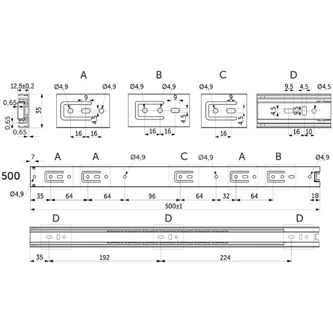 Направляющая шариковая H=35 500 мм 2 шт GRIDLI 106054