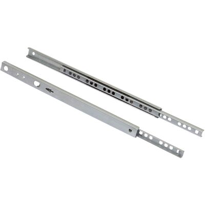 Направляющая с шарикоподшипниковым механизмом (сепаратор пластиковый) и телескопической структурой, обеспечивает неполное выдвижение (3/4). Высота 17 мм. Нагрузка до 10 кг. Изготовлена из холоднокатаной стали. Размерный ряд от 182 до 406 мм. Материал "тележки": нейлон. Блокировка, препятствующая выпадению.