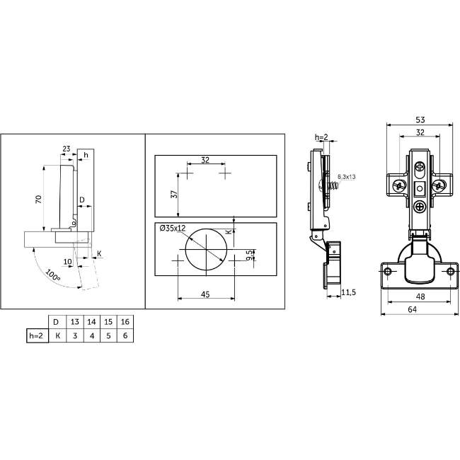 Петля накладная с доводчиком 100° 48мм H-2 clip-on AKS 108699 (еврошуруп)