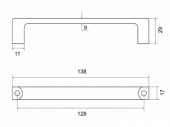 Благодаря соблюдению межосевого расстояния 128 мм (между точками крепления) скобы легко устанавливаются на стандартные по размеру двери шкафа и ящики.