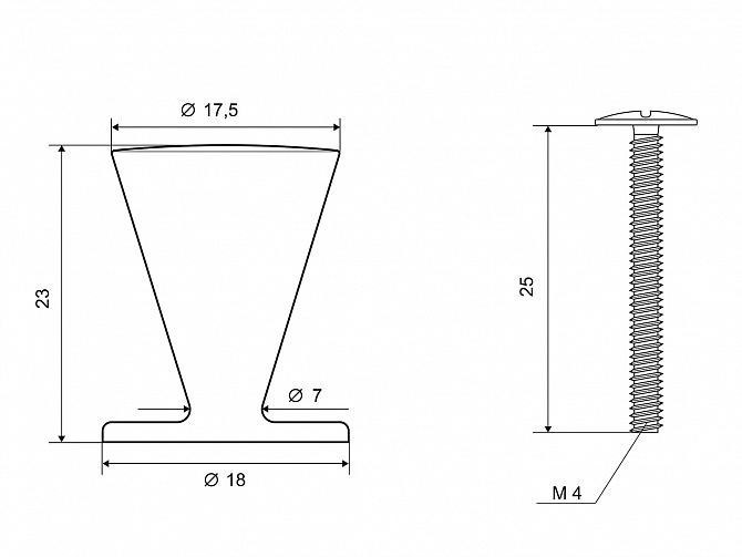 - Основание – ø18 мм, верх – ø17,5 мм. Высота – 23 мм.