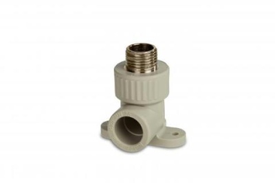 Колено ПП с наружной резьбой 20x1/2", с креплением, серый, VALFEX используется для присоединения водопроводной арматуры, смесителей и нагревателей.