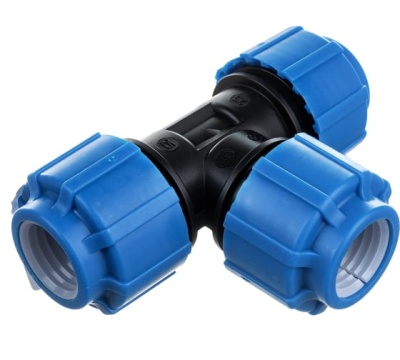Тройник равнопроходной компрессионный является деталью трубопроводной системы из ПНД труб для технического или питьевого водоснабжения, широко используется в системах полива. Назначение тройника равнопроходного - для устройства разветвления равного диаметра в пластиковых трубопроводах.