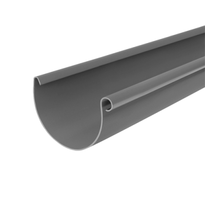 Желоб водосточный 125 мм / 4 м (графит) Bryza обеспечивает сбор дождевой воды с поверхности свеса. Форма желоба позволяет избежать перелива при большом потоке воды с крыши здания, за счет ребра у внутренней части желоба, которое работает как отбойник, перенаправляя поток в сторону сливной воронки.