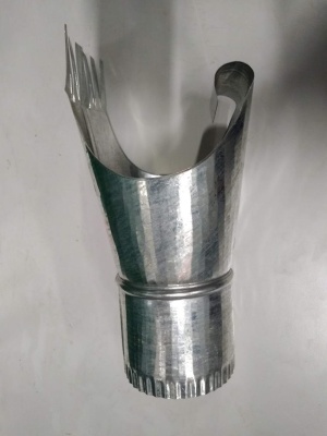 Отвод желоба (воронка) из оцинкованной стали 0.5 d120 Жесть изготавливается из листа металла толщиной 0.5мм. Помогает защитить места примыкания кровли к стене и трубам от влаги и осадков. Вывод осадков из желоба дальше в систему.