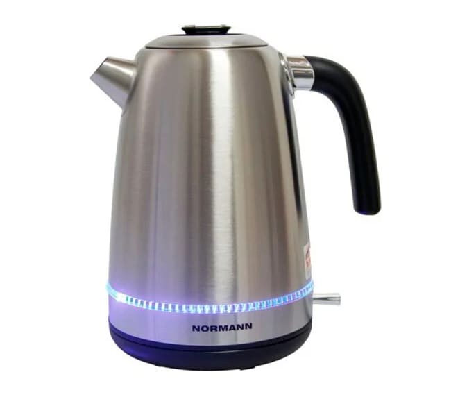 Электрочайник 1.7л Normann AKL-143 объемом 1.7 л и мощностью 2200 Вт отлично подходит для ежедневного кипячения воды дома или в офисе. Корпус и внутренняя колба выполнены из нержавеющей стали, что обеспечивает долговечность и быстрое нагревание. Благодаря закрытому нагревательному элементу снижается образование накипи и упрощается уход за изделием.