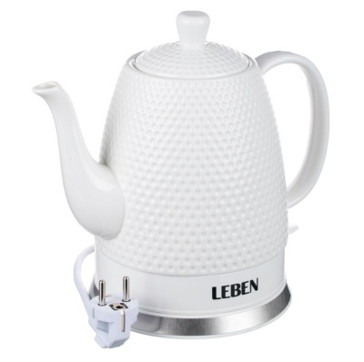 Электрочайник керамический 1.5л Leben 291-031 Изделие имеет форму классического чайника с удобной ручкой, удлиненным носиком и съемной крышкой. Керамический корпус смотрится эстетично и не теряет вид с течением времени.