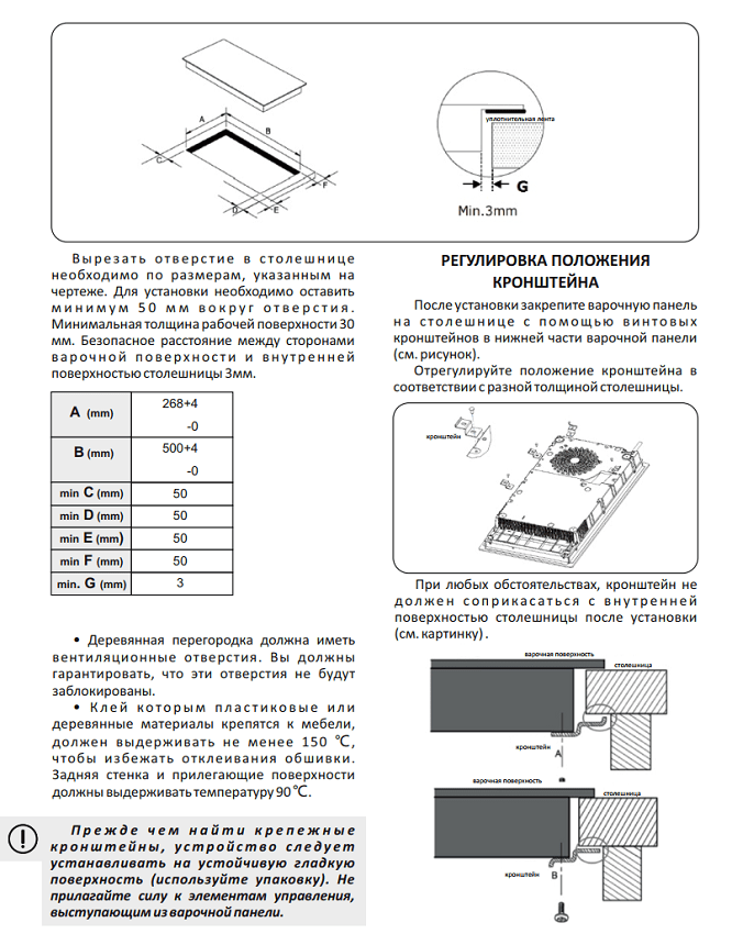 - Монтажные размеры: 268x500 мм