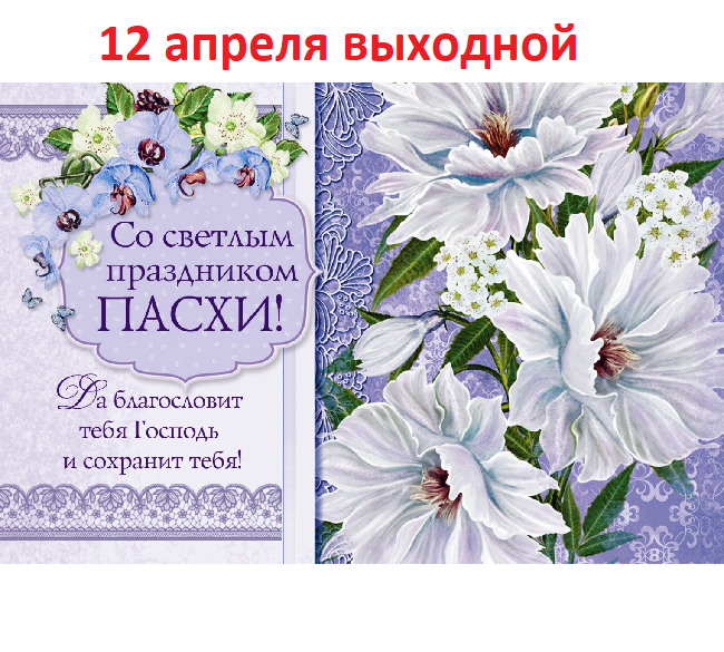 12 апреля магазин не работает. С праздником Светлой Пасхи!