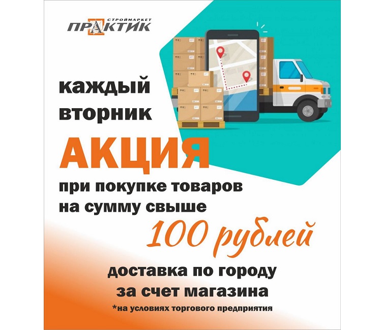 Покупай на сумму свыше 100 рублей во вторник и мы доставим за счет магазина по городу Бобруйску